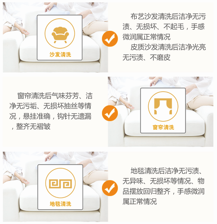 包含各種材質(zhì)的沙發(fā)、地毯、窗簾等清洗服務(wù)。